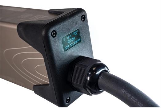 Druhá generace přenosné nabíjecí stanice s praktickým displejem. Cenově dostupná přenosná nabíjecí stanice určená pro nabíjení elektromobilů z průmyslových třífázových zásuvek během cest.